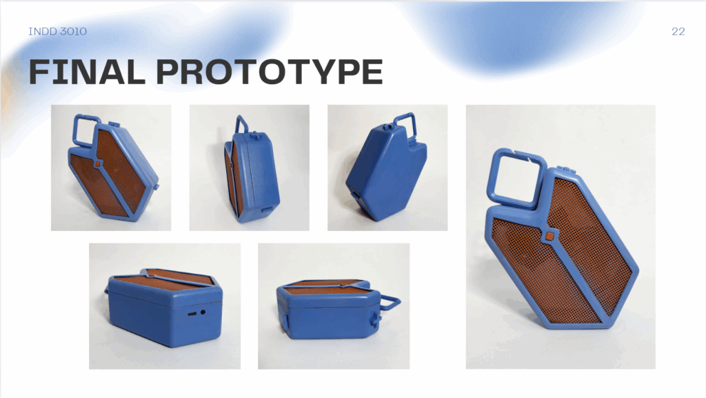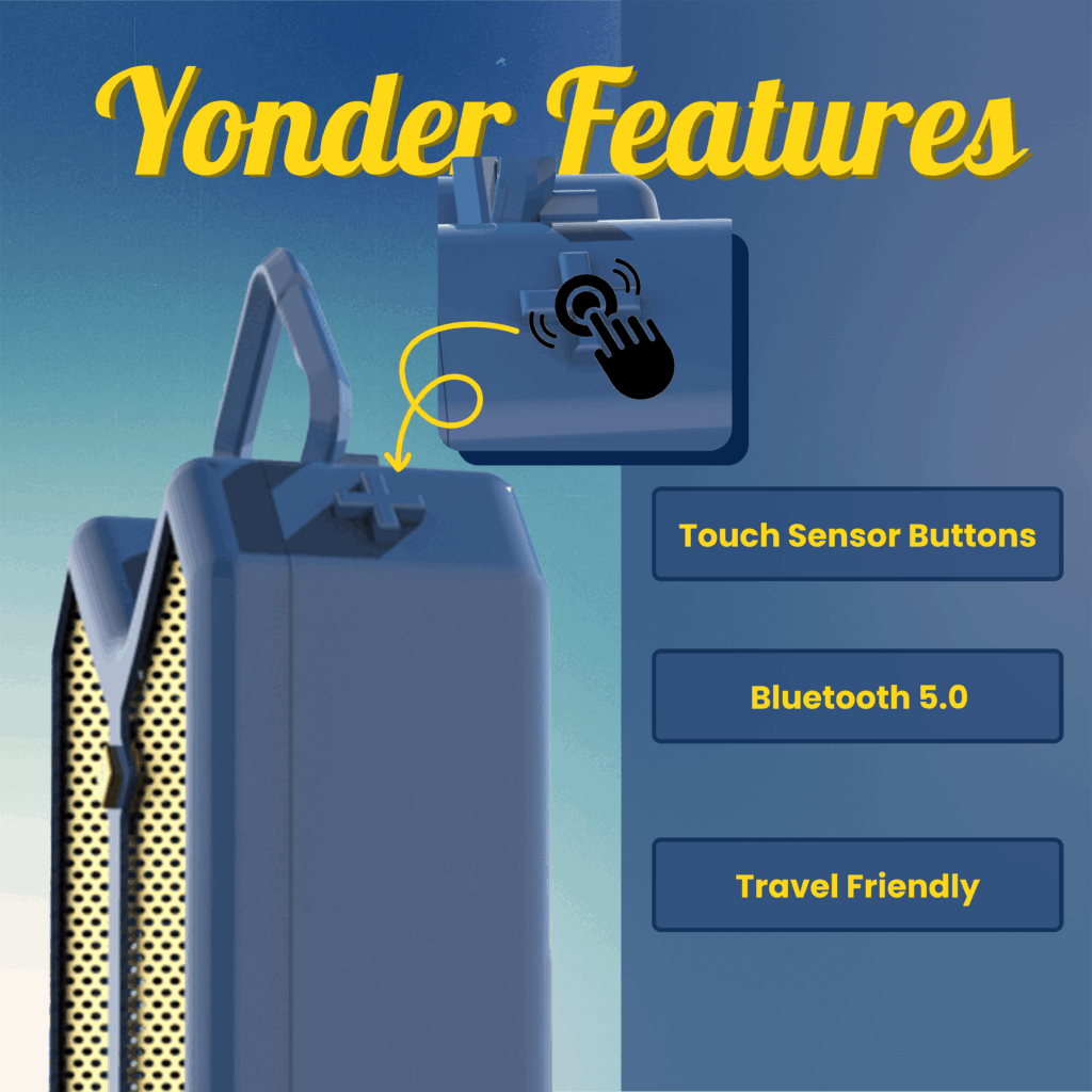 Me and my partner Olivia Slickers, designed the Yonder Speaker with outdoor enthusiasts in mind, drawing inspiration from the shape of a beetle. The portable design features a convenient clip, making it easy to carry during hikes, camping trips, or other outdoor activities. We chose bright colors and a glossy finish so the speaker is easy to spot if dropped, and a smooth surface that allows for effortless cleaning after use. The result is a durable, functional, and playful speaker that fits seamlessly into any adventure.